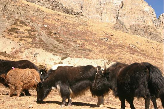 on Day 4: we experienced our first and only major rain fall of the entire trek, but it lasted less than an hour – just long enough for us to enjoy a morning tea in the shelter of a tea house. We were affraid that the rain would be a sign of snow in the pass (which would make it impassible) as the clouds further up the valley continued to hover over the pass ominously for a couple of days. By this point, teams of donkeys and many large groups of trekkers started to appear, and to vie with us for position on the trails. Temperatures had dropped low enough that we required warm layers at night, which made for much more pleasant hiking during the day. Due to the larger crowds competing for the better beds, and in respect for the more rapid altitude gains we achieving, we had to start cutting our days short. We spent the night in Danagu.